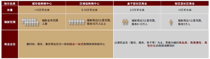 图表:不同类型商业业态对比
