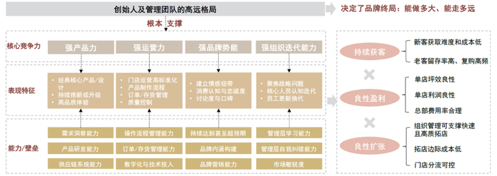 核心竞争力评判体系:产品、运营、品牌、组织迭代能力。公司通过不断打磨上述能力形成强大内功,以实现持续获客、合理的盈利水平以及良性可持续的门店扩张。