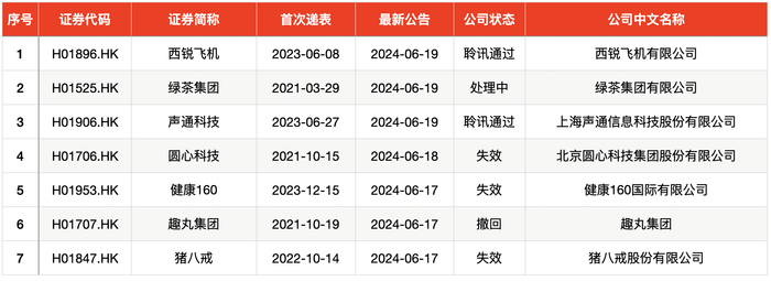 上周共有1家企业递交招股书,为绿茶集团有限公司;值得注意的是,猪八戒股份有限公司招股书已经失效。