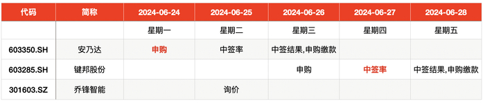 本周投资者将迎来2只新股申购。周一申购的新股为安乃达;周三申购的新股为山东键邦新材料股份有限公司(简称“键邦股份”,603285.SH)。