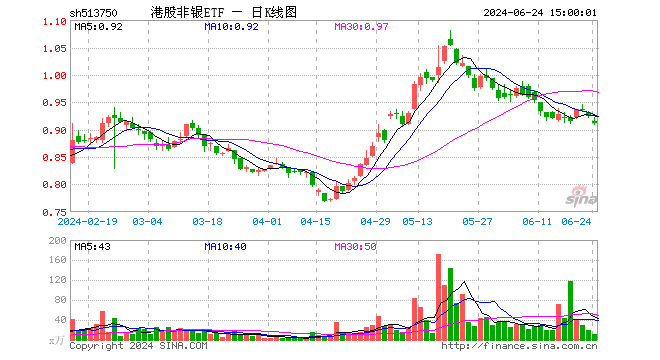 流动性方面,截止6月24日,港股非银ETF(513750)近20个交易日累计成交金额6.94亿元,日均成交金额3468.40万元。