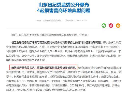 然而,值得关注的是,2023年4月13日,前任董事长颜廷军向该行董事会提交辞职报告,不再担任本行董事长、董事职务。2024年4月,山东省纪委监委公开曝光了4起损害营商环境典型问题,其中就有颜延军。