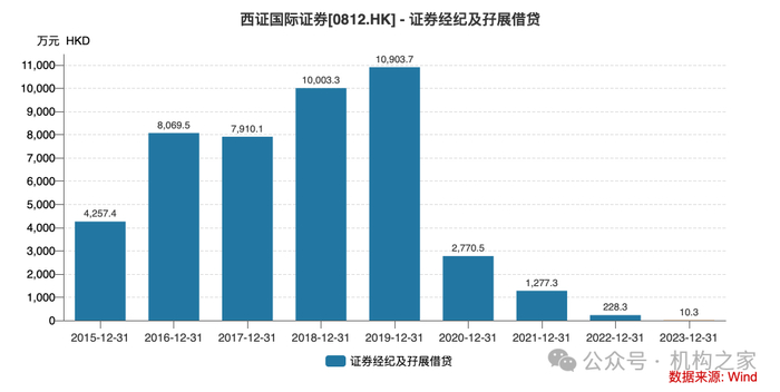 更为严重的是,证券经纪及孖展业务在随后几年并未如预期般复苏,反而继续加速下滑。到2023年,该业务收入已跌至仅有10万港元的历史低点,几乎可以忽略不计。这种持续恶化的趋势反映出西证国际证券在维系客户关系、把握市场机遇方面存在重大挑战。同时,也暴露出公司在应对市场变化、调整业务策略方面的能力不足。