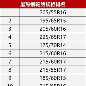 最热销的轮胎规格