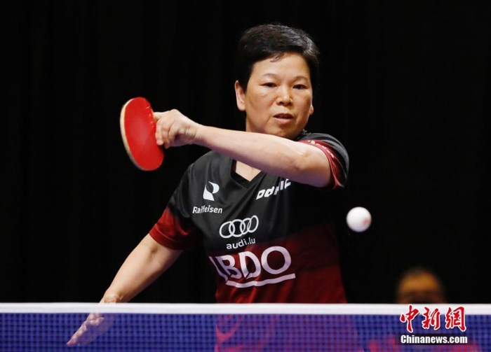 当地时间11月24日,58岁的卢森堡乒乓球选手倪夏莲在休斯敦世乒赛女子单打比赛中。当日,倪夏莲4比0战胜对手 Ivana MALOBABIC,晋级女单32强。中新社记者 刘关关 摄