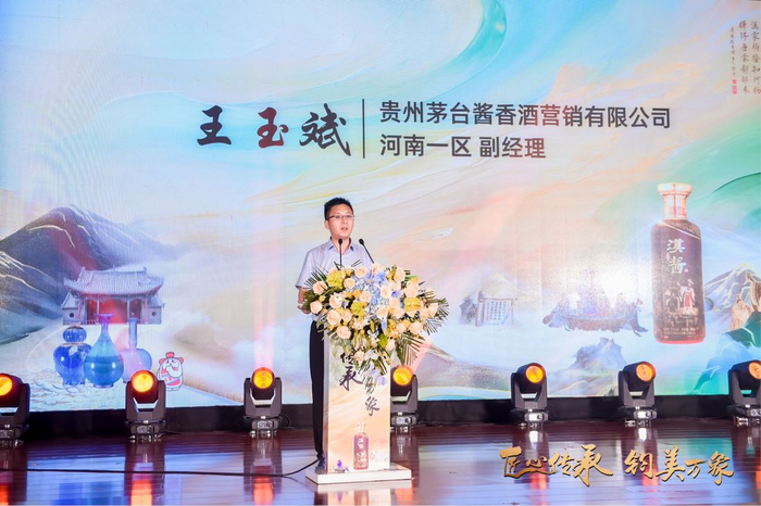 晚宴现场,贵州茅台酱香酒营销有限公司 河南一区副经理王玉斌 在致辞中表示,神垕古镇位于河南省中部地区,素有 “千年钧都” 美誉,是自唐宋以来驰名世界、独步天下的钧瓷艺术发祥地,小镇世代以烧造陶瓷为主,传承千年而窑火不断。今日,我们以汉酱酒为契机,走进神垕古镇,以非遗钧瓷探寻中华文脉传承,感受钧瓷天人合一的匠心工艺。与消费者们共同见证这场艺术与文化交融的盛宴。