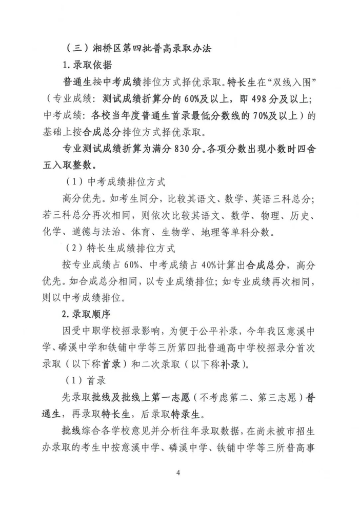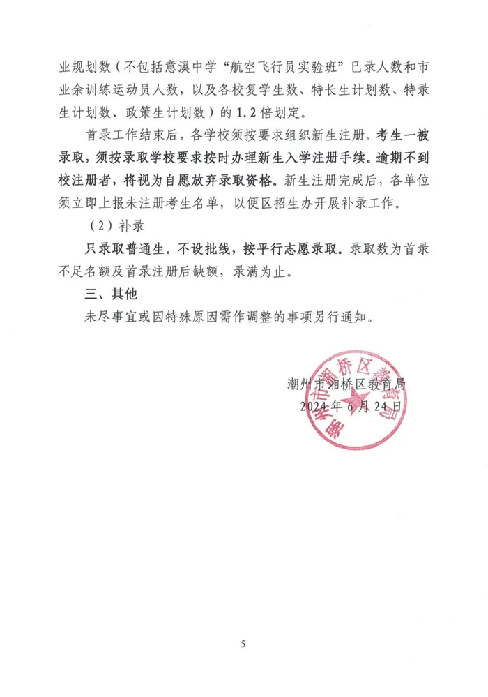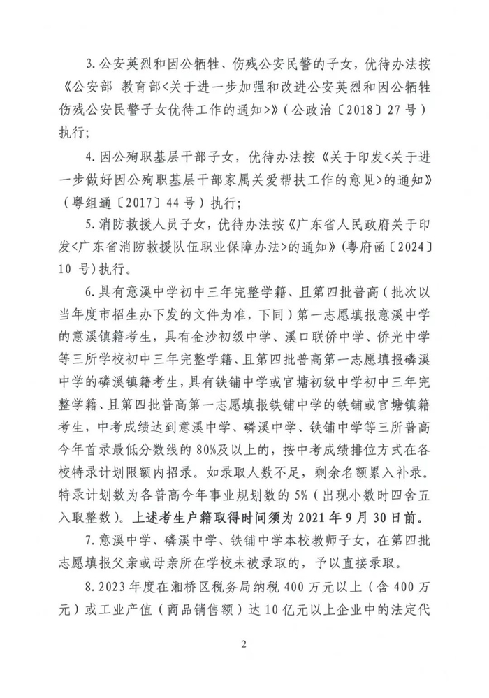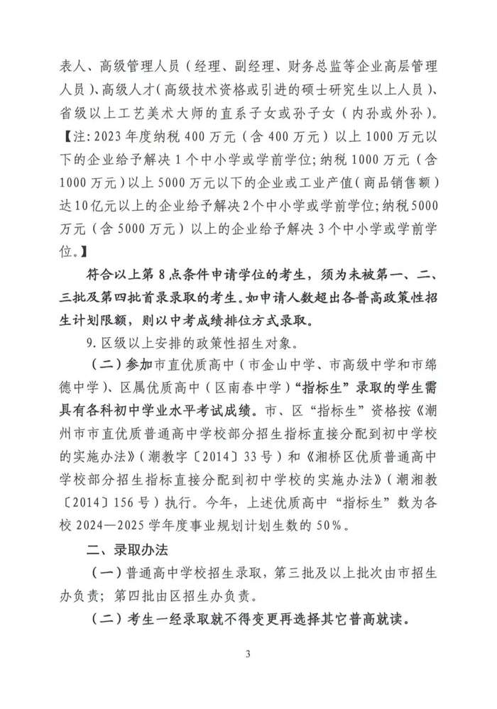 湘桥区2024—2025学年度高中一年级招生工作意见