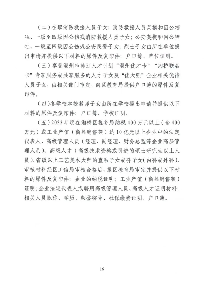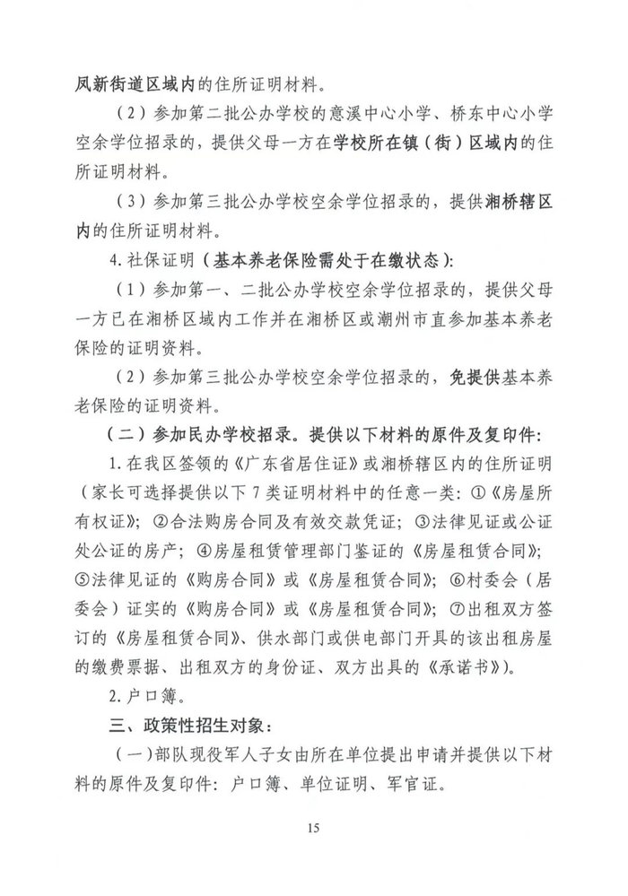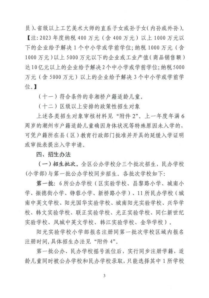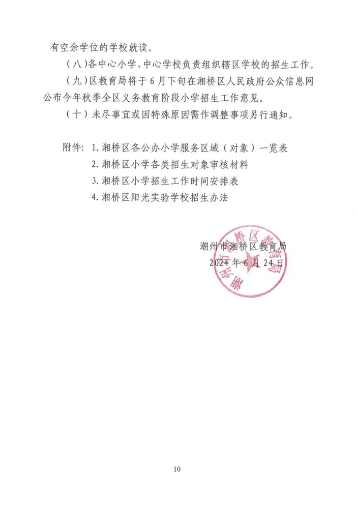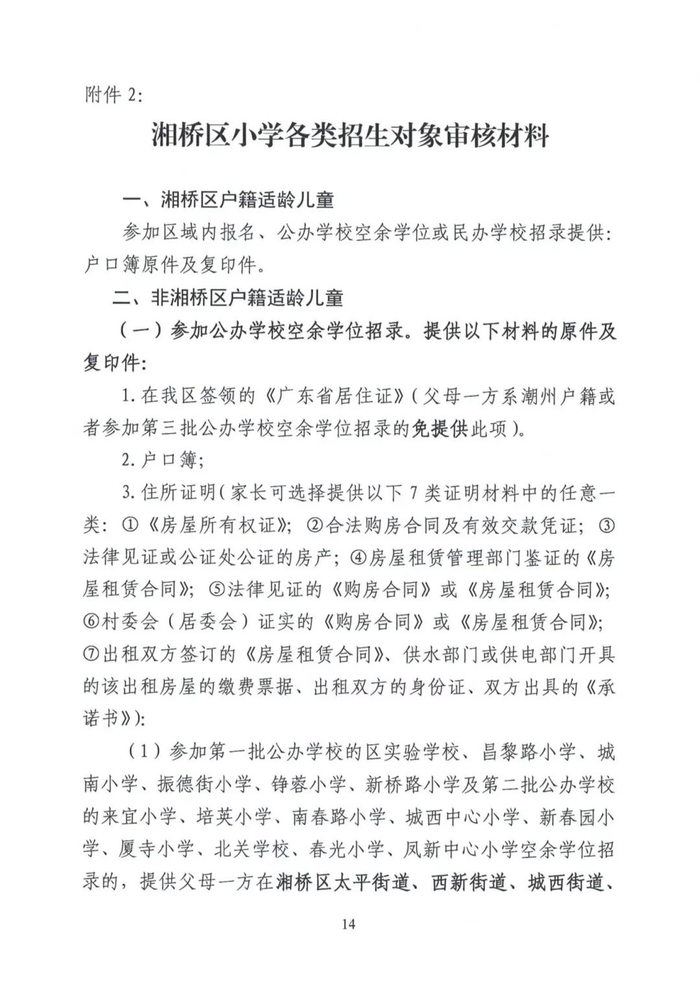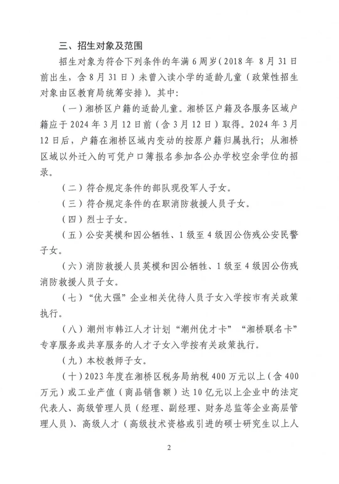 湘桥区2024-2025学年度小学一年级招生工作意见