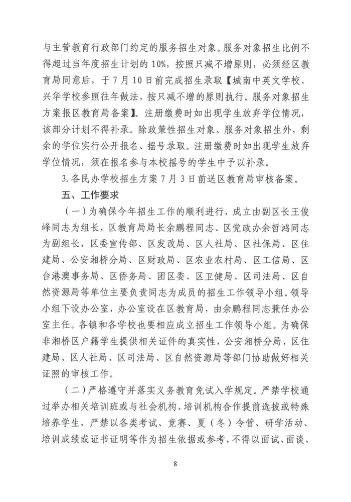 高中、初中、小学、幼儿园招生工作意见