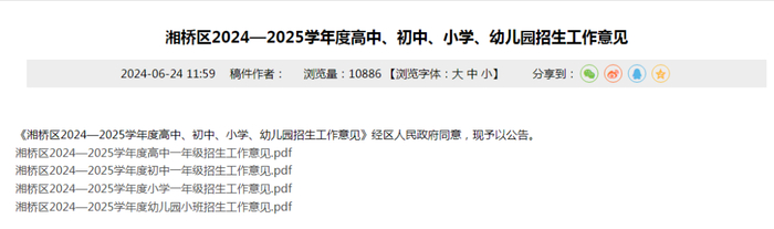 湘桥区2024—2025学年度高中、初中、小学、幼儿园招生工作意见发布