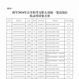海军2024年公开招考文职人员拟录名单公示