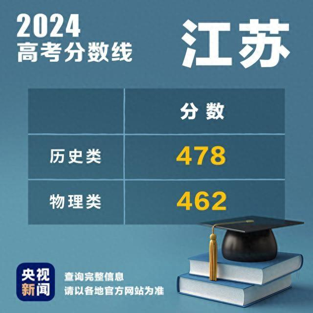 江苏2024高考分数线出炉:历史类本科478物理类462
