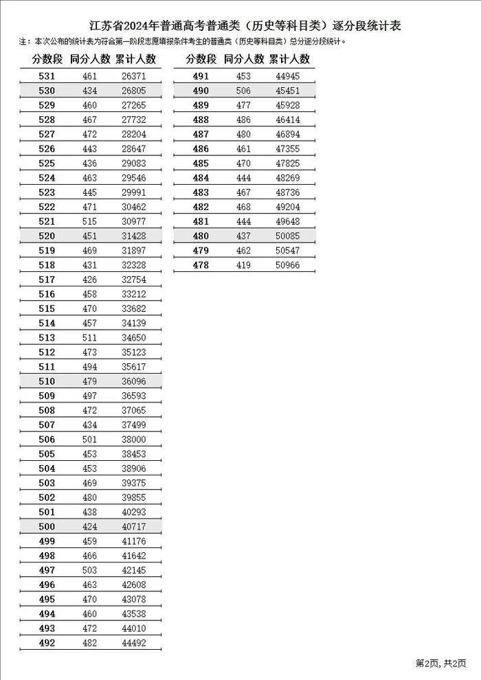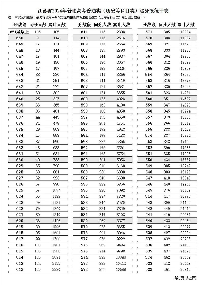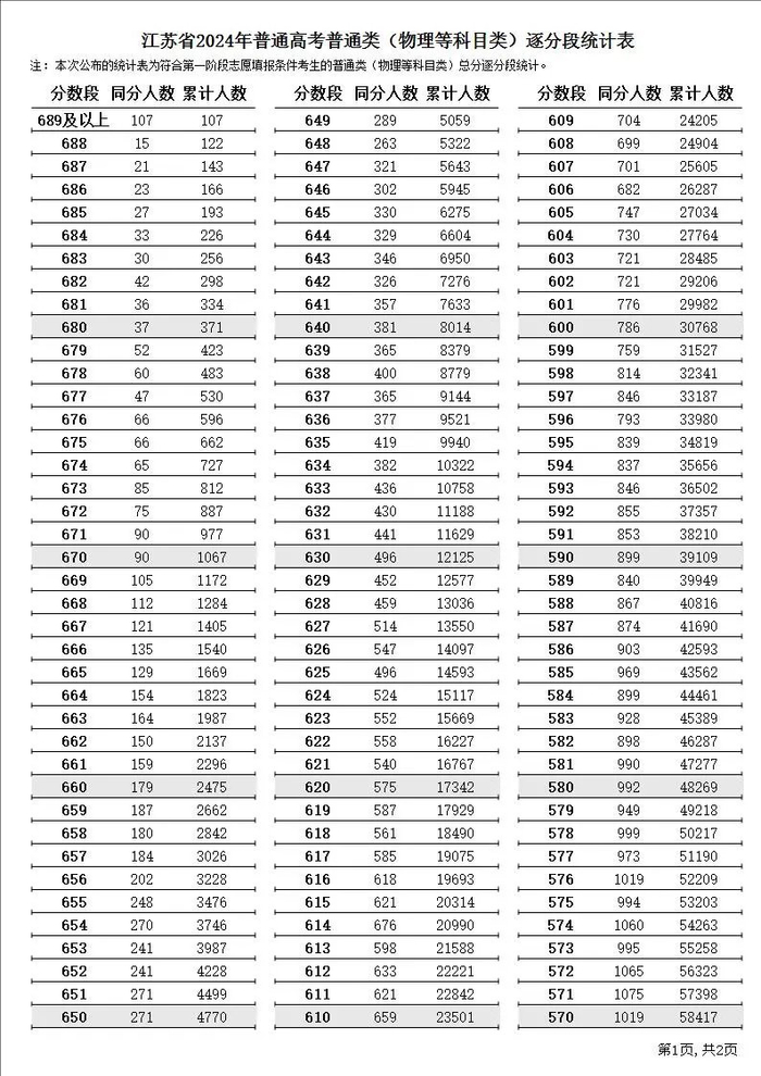 原标题:2024年江苏高考逐分段统计表 江苏高考一分一段表排名查询