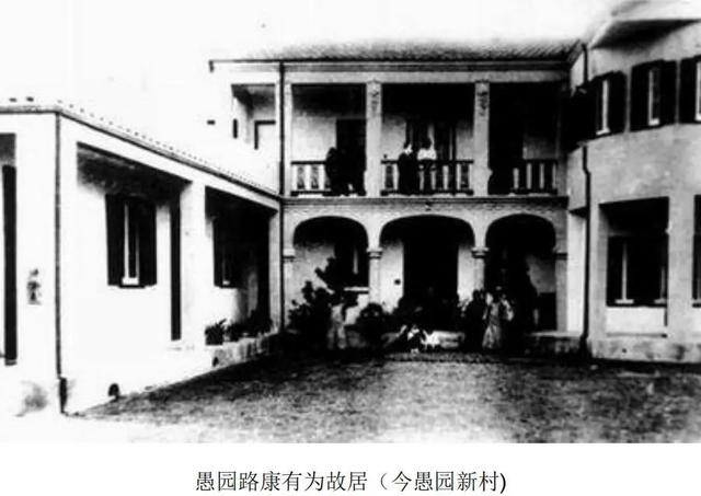愚园新村(愚园坊) 属西式里弄民居,此处曾居住过中国近代维新派领袖康有为。辛亥革命失败后他和张勋合作“张勋复辟”,被段祺瑞打败后迁居上海,在愚园路750弄构筑了“游存庐”花园住宅以颐养天年。康有为在 “游存庐”度过了一生中最后的7年时光,在花园落成时,他作有“自有天游人非想,默存独乐始于今 ”的诗句,可谓其闲度隐居生活时心情的真实写照。