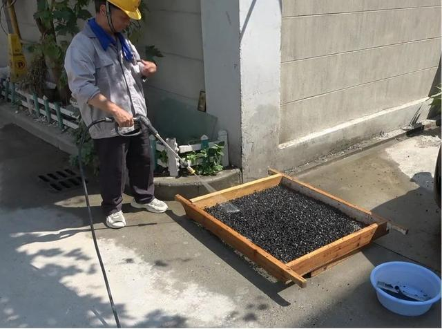浇水养护:粘石灰未终凝以前,应对已粘石面层进行检查,发现问题及时修理,常温24h后,用喷壶浇水养护粘石面层。