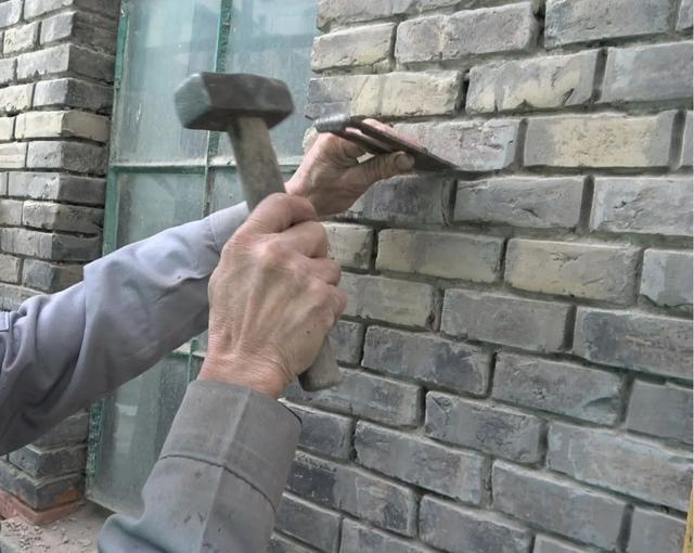 顺序自上而下、从右向左,先勾水平灰缝(俗称长缝)、后勾竖缝(俗称头缝)。勾平缝高度一般为8mm-10mm,收进砖面2mm。勾元宝缝,高度6mm-8mm,收进砖面2mm,外弧面不宜超出砖面。