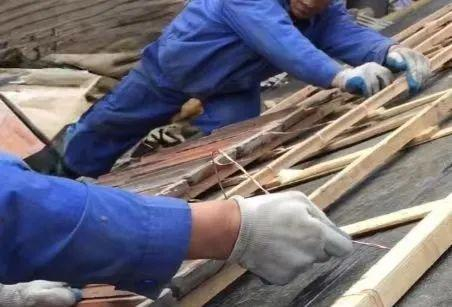 屋架及构造层检修:及瓦片卸落地时,剔除风化、出水槽损坏及裂缝严重等瓦片。使用的瓦片不应有缺角(边、瓦爪)、砂眼、裂纹和翘曲。检修加固屋架桁条,屋面板,如屋面低凹不平,应适当垫平使之和顺。屋架检查完毕后,对木构件进行白蚁防治工作。木檩条下挠大于1/250时,必须及时更换,不得重复利用。