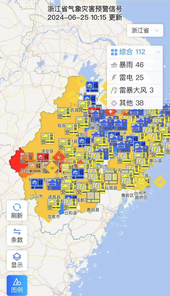 预计,6月25日08时至26日08时,浙江西部、安徽南部、江西东北部和西部、湖南东部和南部、广西北部、贵州西南部等地发生地质灾害的风险较高(黄色预警);浙江西部、安徽南部、江西东北部和西北部、湖南东部等地部分地区发生地质灾害的风险高(橙色预警);浙江西部、安徽南部、江西东北部等地局部发生地质灾害的风险很高(红色预警)。请当地居民注意防范降水引发的地质灾害,尤其是地质灾害隐患点附近区域。