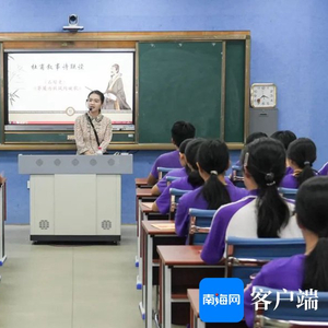 儋州一中教师开展示范课《杜甫叙事诗联读》。学校供图