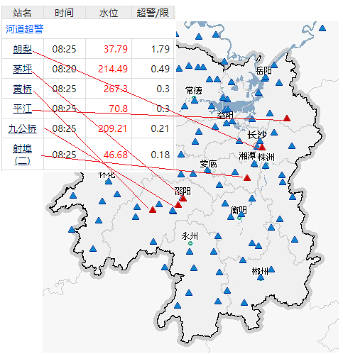 6月25日,“湖南水文”微信公众号发布水情信息:目前全省6站超警状态。