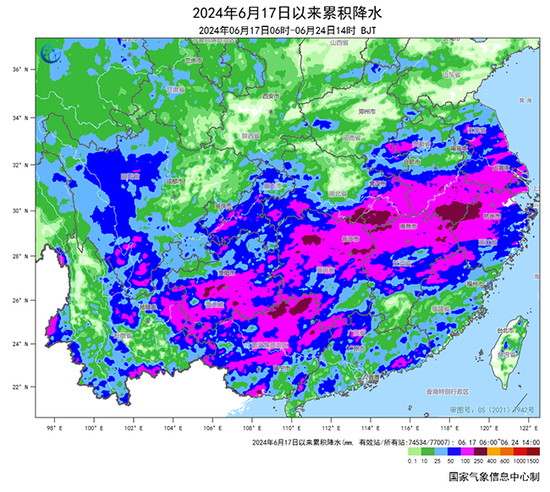 6月17日以来,安徽、浙江、江西、湖北、湖南等地部分地区累计降雨量有200~400毫米,湖南常德、安徽黄山等局地达500~713毫米。