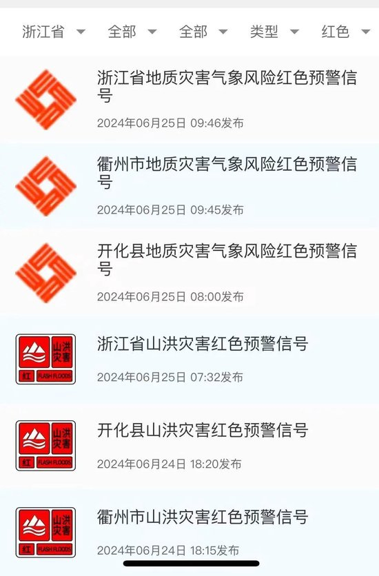 其中红色预警6条。