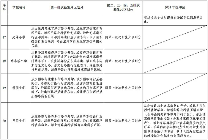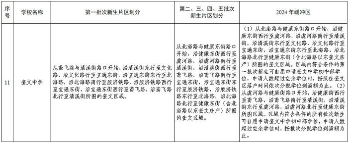 为缓解学位压力,按照就近、公平、当年有效的原则,2024年为部分学校设置入学缓冲区,在满足本校招生片区需求的前提下,剩余学位可按批次顺序安置缓冲区内符合条件的新生。报名人数超过剩余学位数时,未获得学位的在原片区学校入学。