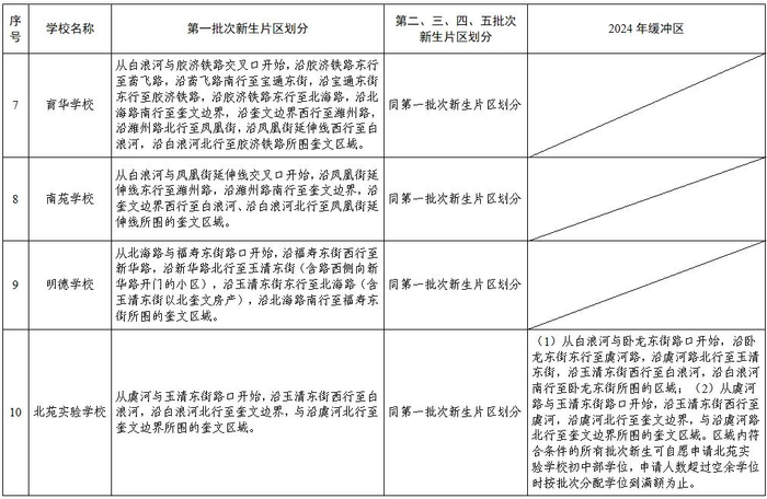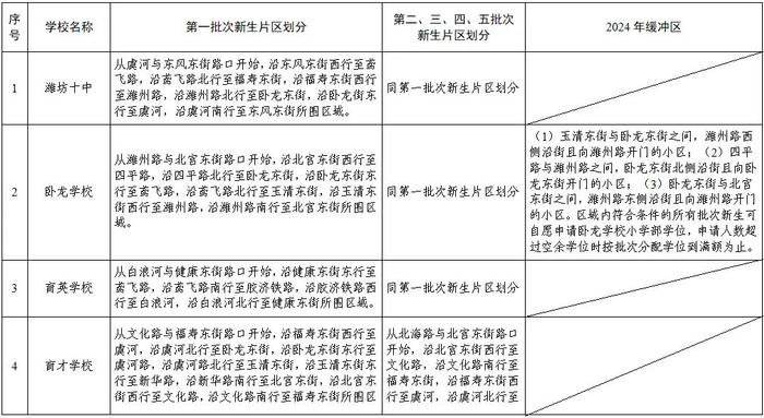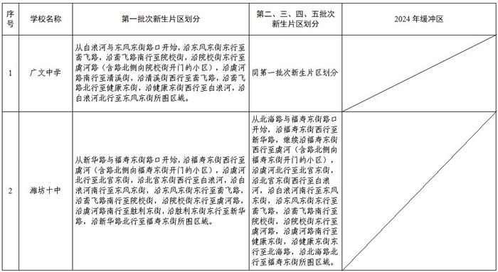 奎文区2024年公办普通中小学校片区划分及招生批次(初中)