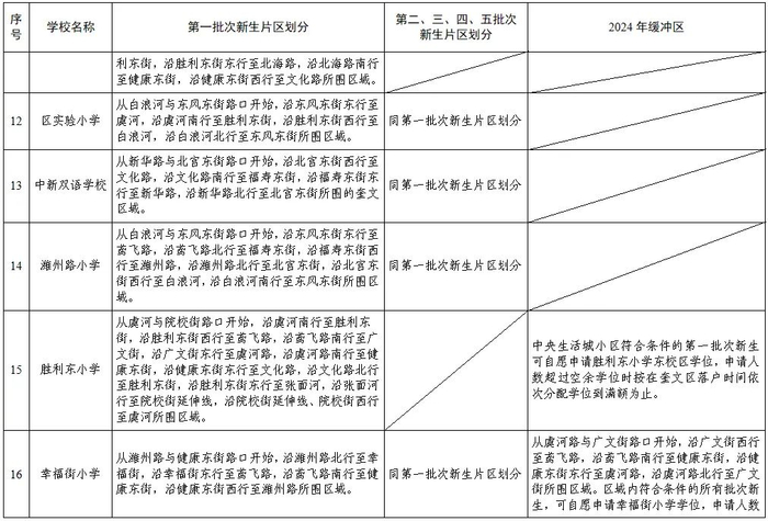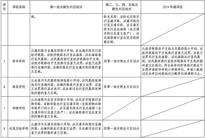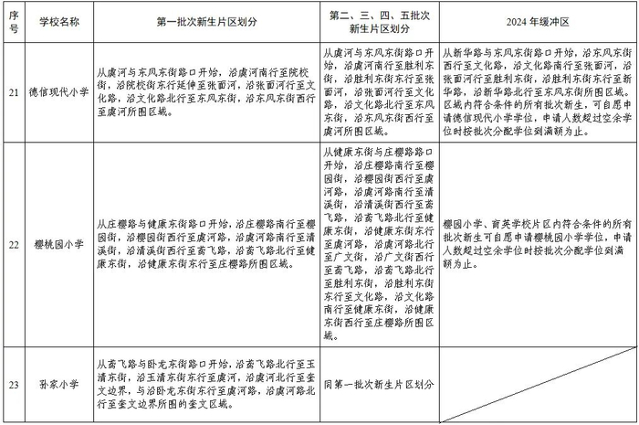 奎文区2024年公办普通中小学校片区划分及招生批次(小学)