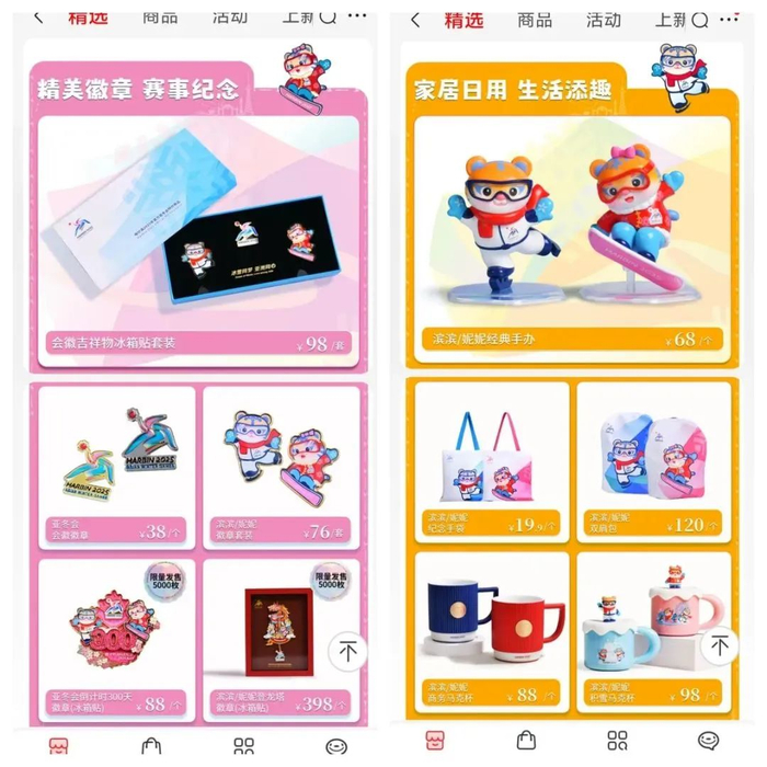 据悉,元隆雅图已为哈尔滨亚冬会开发相关特许商品百余款。以吉祥物“滨滨”和“妮妮”为主要形象的各类特许商品在线下特许零售店销售火爆。日前,由元隆雅图负责运营的亚冬会首家线上特许旗舰店已在京东平台开业,毛绒玩具、徽章、钥匙扣、冰箱贴、家居用品、箱包等亚冬会周边已可在线上选购。