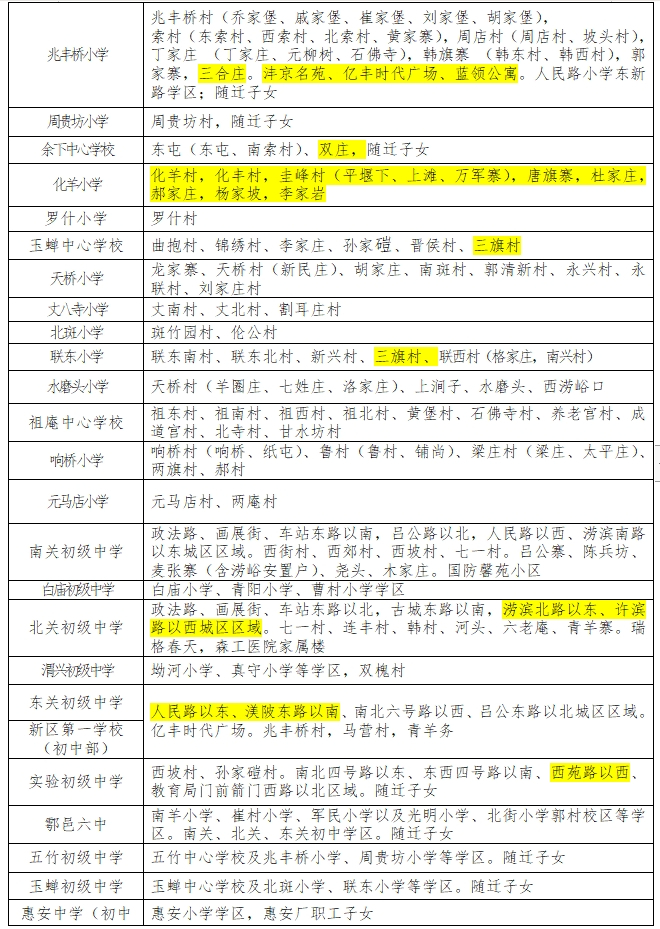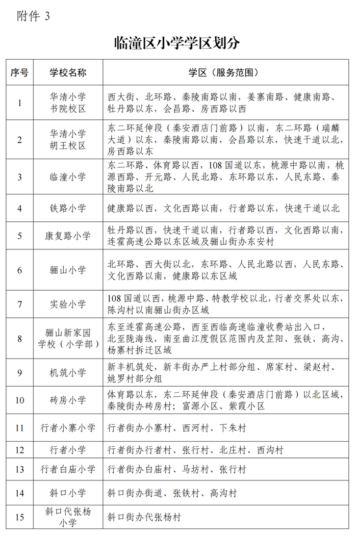| 西安市曲江第十五小学(西安市曲江南湖小学教育集团成员校) | 东、西三爻村,东、西三爻堡及所属土地的新建小区。 | |
