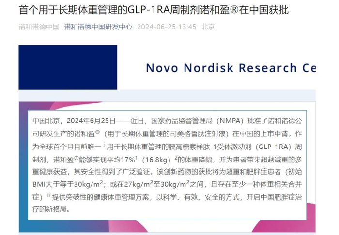 全球首个GLP-1RA周制剂!诺和诺德司美格鲁肽在中国获批减肥适应症