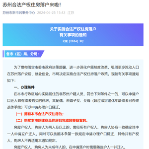 6月25日,苏州市公安局发布关于实施合法产权住房落户有关事项的通知。为了贯彻落实市委市政府决策部署,进一步深化户籍制度改革,吸引更多流动人口在苏州落户安居、就业创业,市局决定实施合法产权住房落户政策。