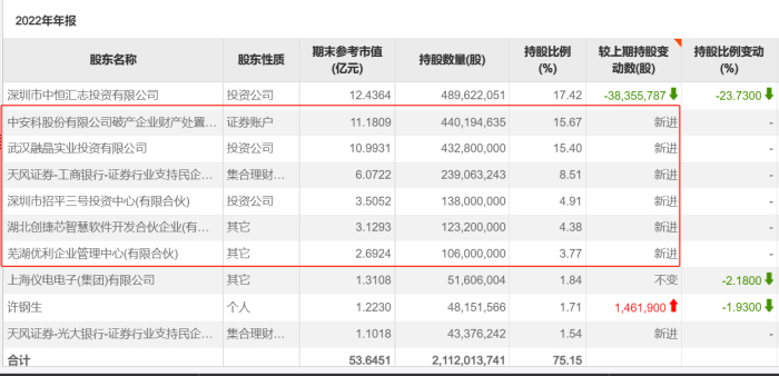 ST中安2022年末前10大股东