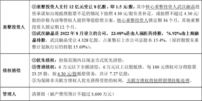其中,核心重整投资人系武汉融晶。