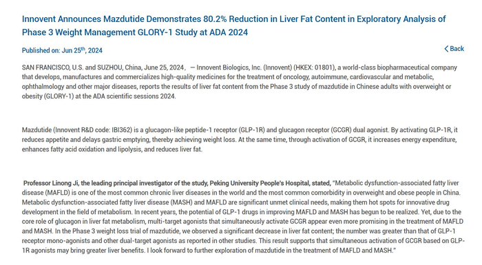 减肥+显著改善脂肪肝!信达/礼来宣布玛仕度肽展现积极效果