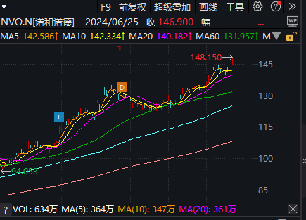 受到利好消息影响,减肥药双雄均创历史新高,诺和诺德收涨3.25%,报146.91美元;礼来制药收涨1.63%,报904.61美元。