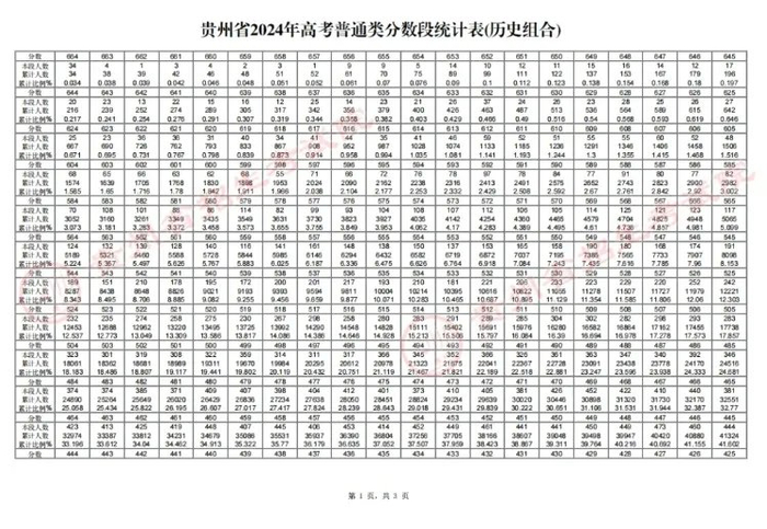 原标题:2024年贵州高考一分一段统计表 高考总分全省排名