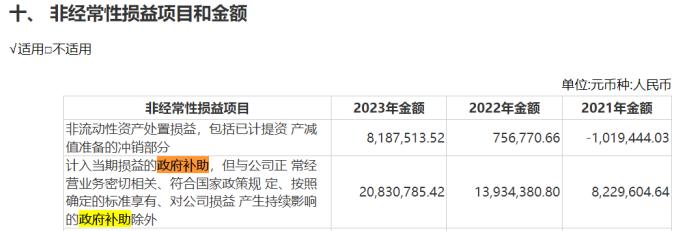 值得注意的是,2023年能够实现归母净利润的同比增长,很大程度上是依赖于政府补助。