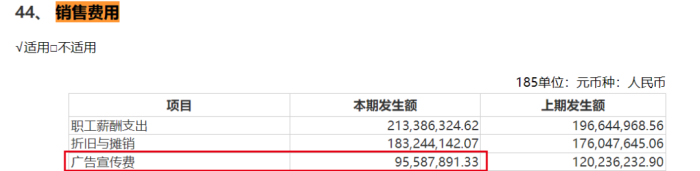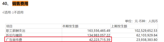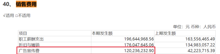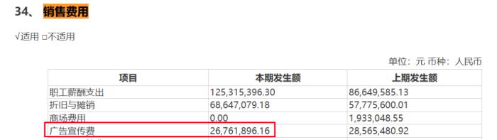 这让公司的广告宣传费直接飙升。财报显示,2019年至2023年,公司的广告宣传费分别为2676.19万元、2393.84万元、4222.37万元、1.20亿元、9558.79万元。