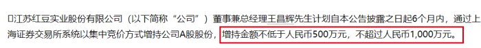 2024年2月,红豆股份发布公告称,公司董事兼总经理王昌辉计划自公告披露之日起6个月内,通过上交所以集中竞价方式增持公司A股股份,增持金额不低于500万元,不超过1000万元。