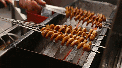 至于夜市烧烤摊或店里常见的烤面筋,是食品流水线上统一制作而成的,经卷紧、煮熟、切割,大小一致、花刀均匀,类似弹簧状,表面积大幅度增加,能够尽可能多地挂上酱汁。