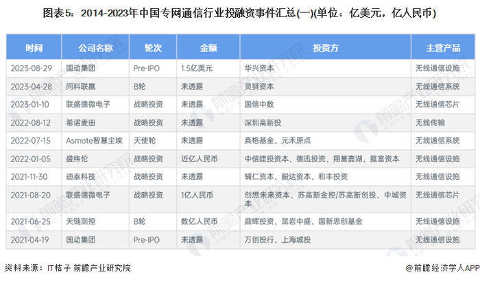 2020-2023年我国专网通信行业的主要投融资事件如下: