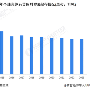 高纯石英的制备方法主要有天然水晶粉磨加工、石英矿物深度提纯、用含硅化合物化学合成三种,全球能够制备高纯石英砂的矿资源主要集中分布于欧洲、美洲及澳洲,资源储量逐步枯竭。2012-2023年,全球高纯石英原料资源储存呈波动下降趋势,到2023年底,全球高纯石英原料资源量为6900万吨。