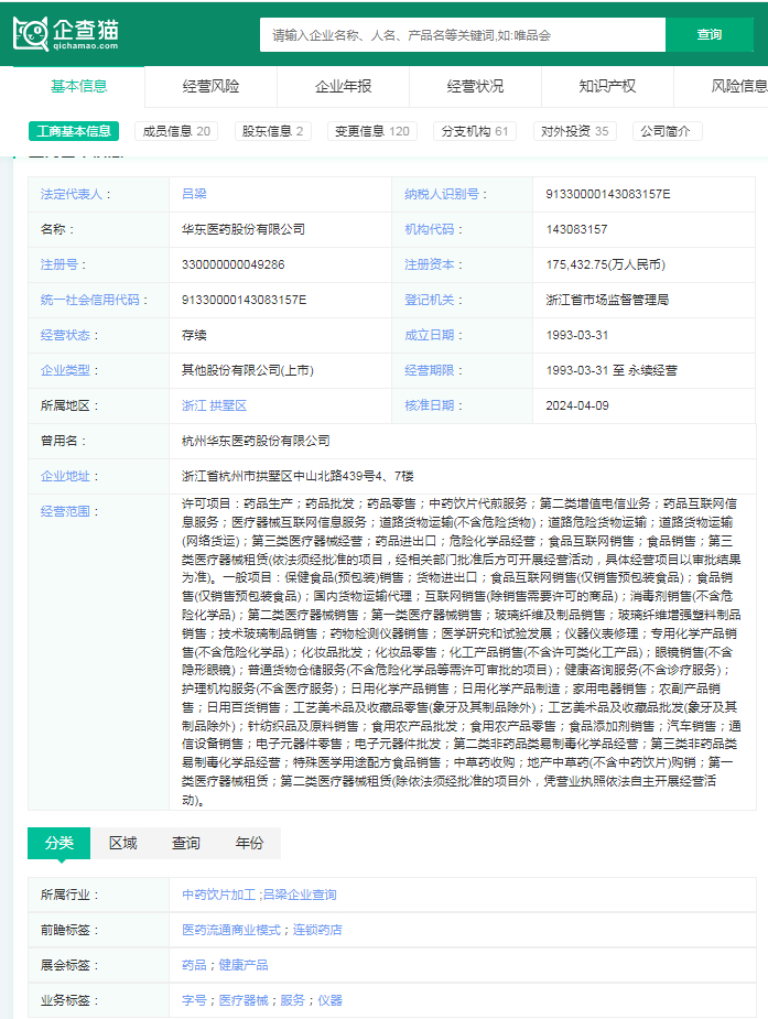 华东医药股份有限公司(简称:华东医药)成立于1993年,注册资金为175,432.75(万人民币),是中国民营企业500强之一,中国500强之一。主要从事抗生素、中成药、化学合成药、基因工程药品的生产销售,以及中西药、中药材、医疗器械等的批零经销业务。