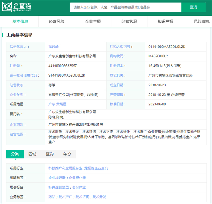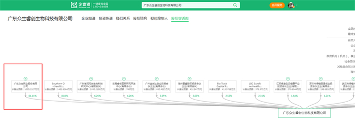企查猫股权穿透图显示,众生睿创是广东众生药业股份有限公司2018年10月创立的控股子公司。