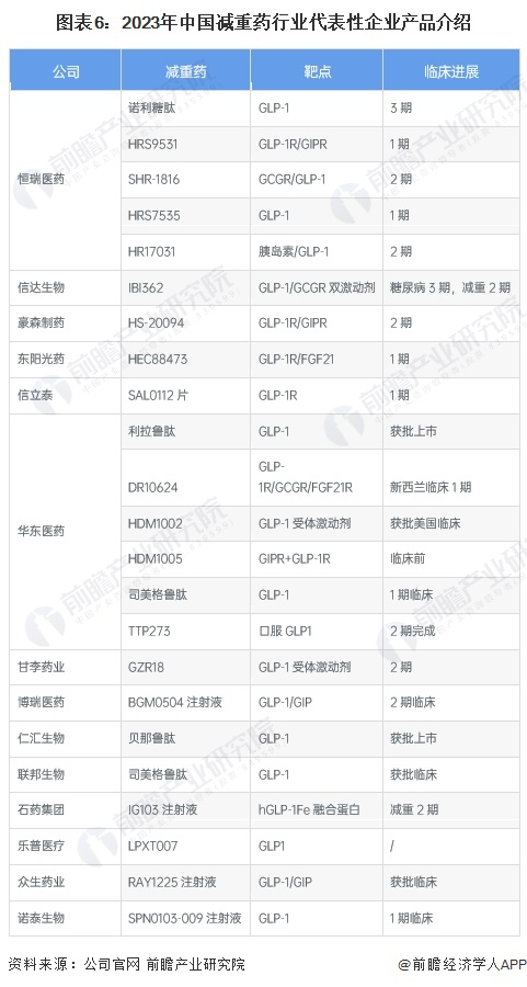 恒瑞医药、华东医药等公司在多肽药物研发方面布局深厚,也有公司如信达生物跟海外合作开发项目,目前开发了多款不同靶点不同给药机制的GLP-1类药物,其中双靶点药物在国内已经走到临床2期以后,如信达生物的IBI362、恒瑞医药的SHR-1816、豪森制药的HS-20094等。