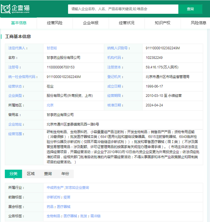 甘李药业股份有限公司(简称:甘李药业)成立于1998年,是一家集科研、开发、生产、销售于一体的高科技生物制药企业。总部位于北京通州经济开发区南区。作为中国第一家掌握产业化生产重组胰岛素类似物技术的公司,甘李药业在生物合成人胰岛素及其类似物的研发和生产方面处于中国糖尿病市场的领先地位。
