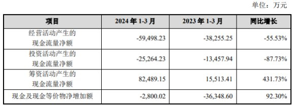 2024年一季度,公司实现营业收入147,883.21万元,同比增长22.02%;归属于母公司所有者的净利润为6,726.69万元,同比增长7.72%;扣除非经常性损益后归属于母公司所有者的净利润为4,813.11万元,同比下降14.50%;经营活动产生的现金流量净额为-59,498.23 万元,上年同期为-38,255.25 万元。