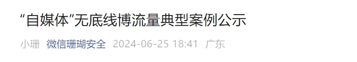 6月25日,微信珊瑚安全微信公众号发布《“自媒体”无底线博流量典型案例公示》。具体如下: